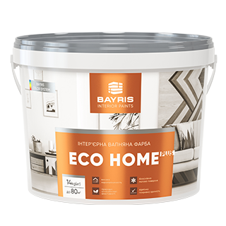 Водно-дисперсійна вапняна фарба «Eco Home Plus» TM «Bayris» («Еко Хоум Плюс» ТМ «Байріс») призначена для декоративно – захисного фарбування стін та стель в житлових та адміністративно - господарських приміщеннях з невисоким експлуатаційним навантаженням. Наносять на нові або раніше пофарбовані вапняними фарбами поверхні з цементних, цементно-вапняних, вапняних штукатурок, бетону, цегли та гіпсокартонних плит тощо.