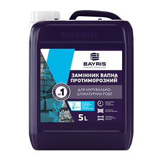 Замінник вапна протиморозний "Для мурувально-штукатурних робіт" ТМ Байріс (ТМ Bayris), це спеціальна протиморозна добавка, яка призначена для приготування мурувальних та штукатурних сумішей на основі цементу та дає можливість виконувати роботи при низьких та мінусових температурах навколишнього середовища. Використовується при укладанні будь-якого типу цегли, газобетонних та пінобетонних блоків, а також при проведенні штукатурних робіт ззовні та всередині приміщення.